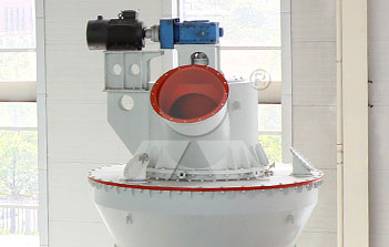 主電機通過減速機帶動磨盤轉動,同時風從進風口進入磨機,物料經螺旋給料機下料口落在磨盤中央,在離心力的作用下,物料從磨盤中央向邊緣均勻移動,經過磨盤上的粉磨輥道區域時,受到磨輥的碾壓,大塊物料直接被壓碎,細粒物料受擠壓后形成料床進行粒間粉碎。被粉碎的物料繼續向磨盤邊緣移動,直到被風環處的強氣流帶走,而較大的顆粒物料又重新掉落到磨盤上繼續粉碎,氣流中的物料經過上部的分離器時,在分離器葉片的作用下,粗顆粒重新回到磨盤上粉磨,合格的細粉隨氣流一起出磨,被系統的集粉器收集,被收集到的粉料即為超細立磨磨出的產品。混入物料的鐵塊等雜物隨物料運動到磨盤邊緣時,由于自身重量大而不能被風吹起,跌落至磨機下腔被安裝在磨盤底部的刮料板刮入排渣口排出機外。
