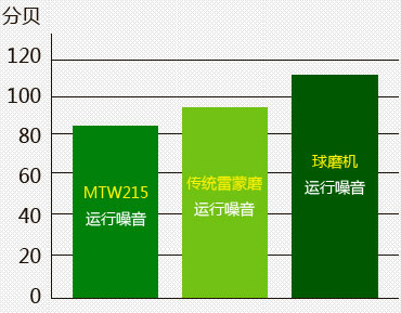 運行噪音:新型縱擺結構,磨輥和磨環在研磨過程中不直接接觸,機器振動小,噪音低,其噪音比球磨機低約25-30分貝
